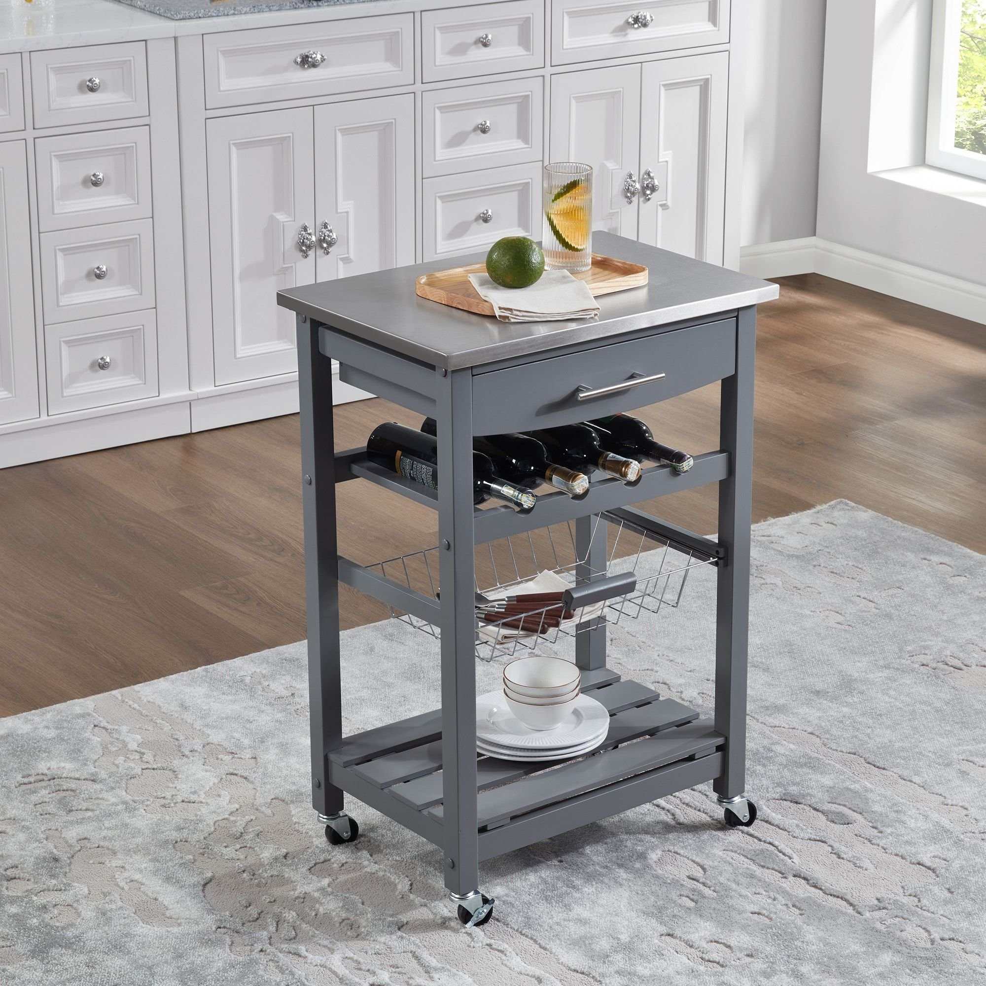 Mobile Rolling Kitchen Island Trolley Serving Cart with Underneath Drawer & Slide-Out Wire Storage Basket Mobile Rolling Kitchen Island Trolley Serving Cart with Underneath Drawer & Slide-Out Wire Storage Basket Mobile Rolling Kitchen Island Trolley Serving Cart with Underneath Drawer & Slide-Out Wire Storage Basket